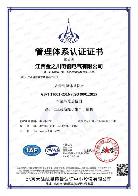 江西金之川電瓷電氣有限公司原名萍鄉(xiāng)市金川成套電瓷廠(chǎng),原屬獨(dú)資企業(yè),創(chuàng)建于2002年。系架空線(xiàn)路、電力電器用瓷絕緣子專(zhuān)業(yè)生產(chǎn)廠(chǎng)家。根據(jù)公司發(fā)展需要,于2017年改制成立了股份有限公司,注冊(cè)資金6000萬(wàn)元,并投資了8000萬(wàn)元,整體搬遷至交通便利的江西省萍鄉(xiāng)市蘆溪縣工業(yè)產(chǎn)業(yè)園,現(xiàn)有占地面積35000平方米,生產(chǎn)廠(chǎng)房面積14000平方米,員工百余名,其中專(zhuān)業(yè)技術(shù)人員35人。是江西省電瓷商會(huì)理事會(huì)會(huì)員單位,萍鄉(xiāng)市品牌企業(yè)促進(jìn)會(huì)理事單位,現(xiàn)已通過(guò)ISO 9001:2015質(zhì)量管理體系、ISO 14001:2015環(huán)境管理體系、OHSAS 181001:2007職...